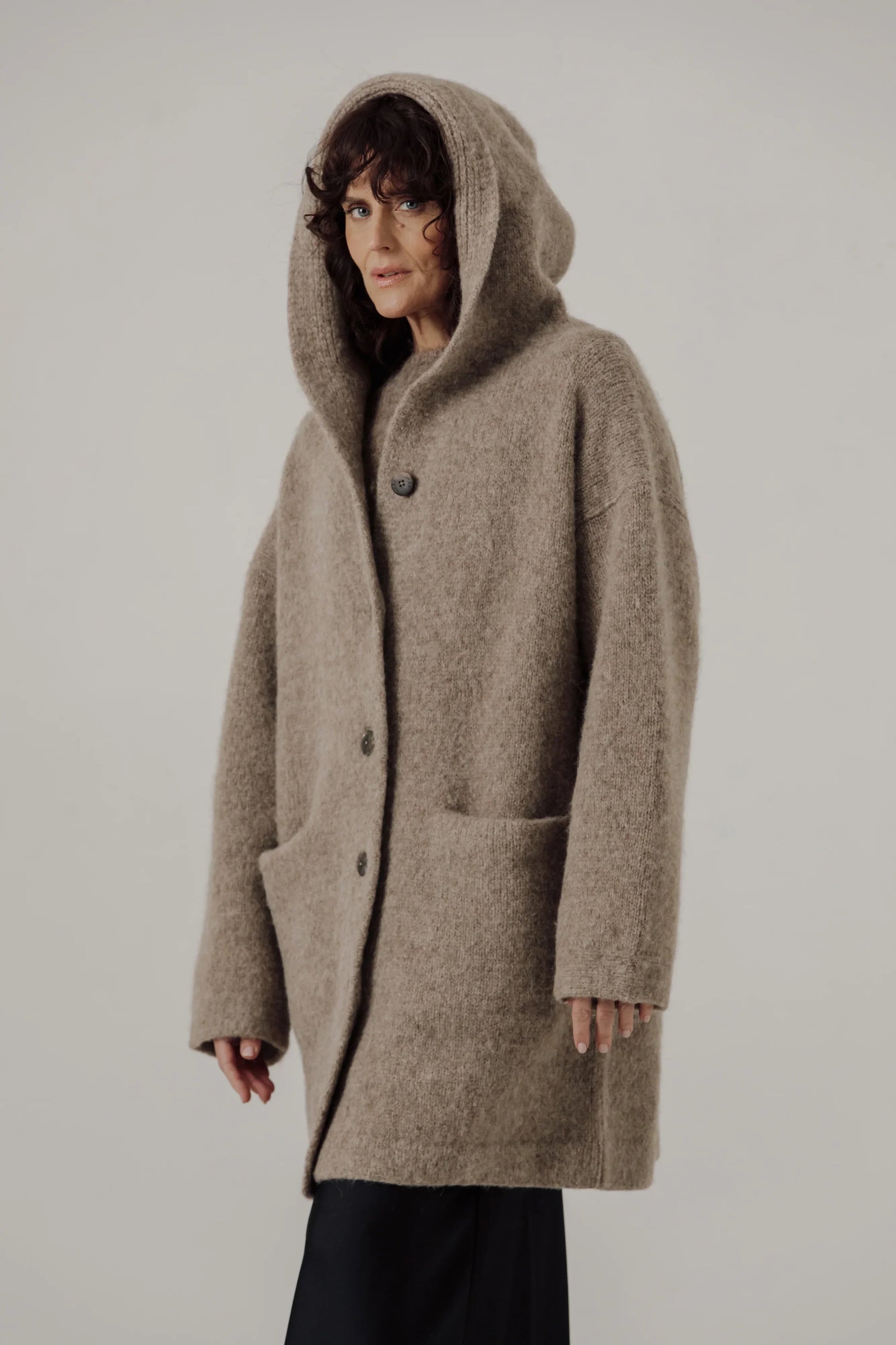 Bare Knitwear Nook Alpaca Knit Coat - Dark Fawn