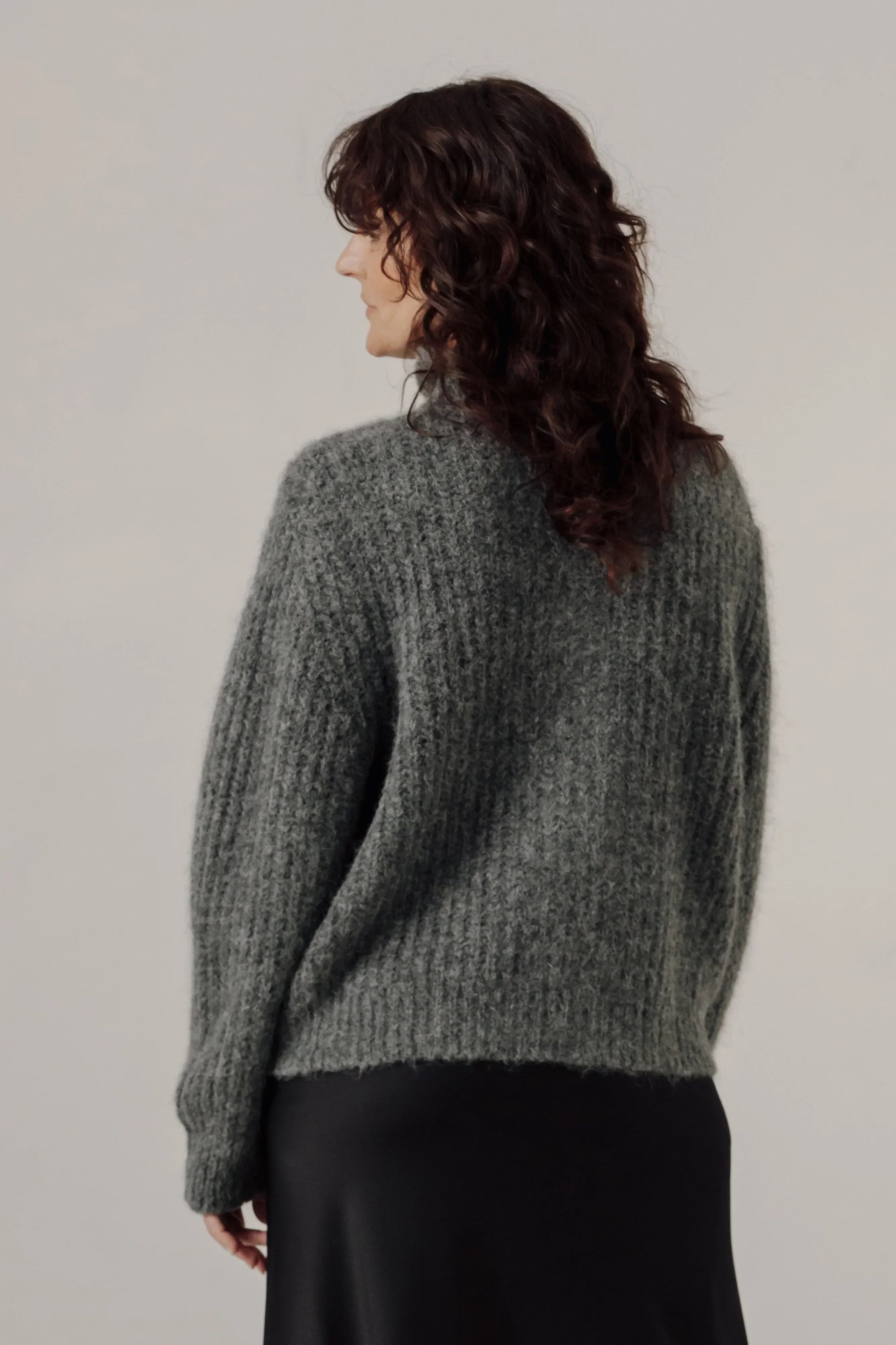 Bare Knitwear Alpaca Rib Zip Jacket - Stone