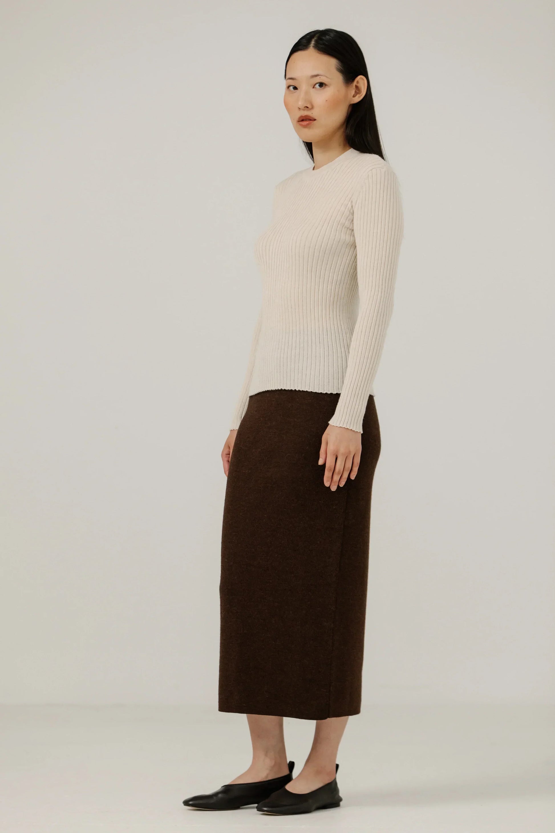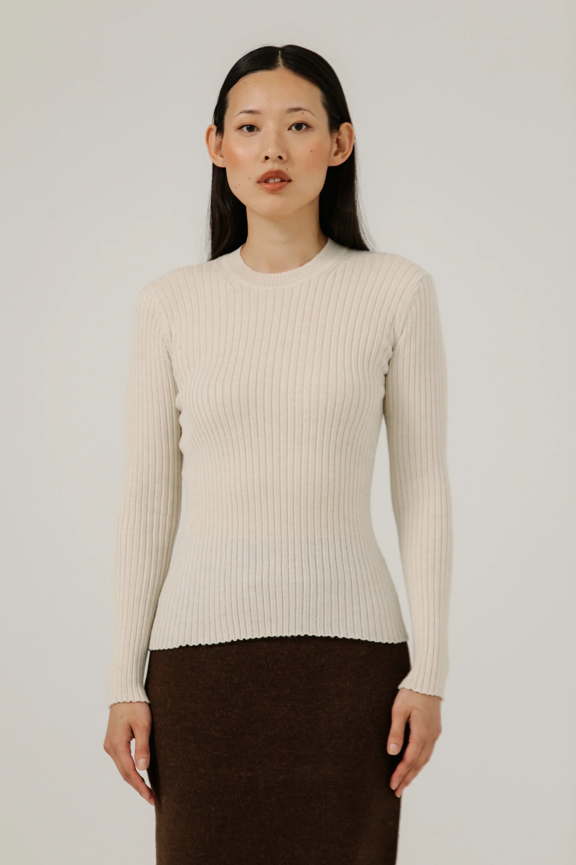 Bare Knitwear Fine Knit Rib Top - Pearl