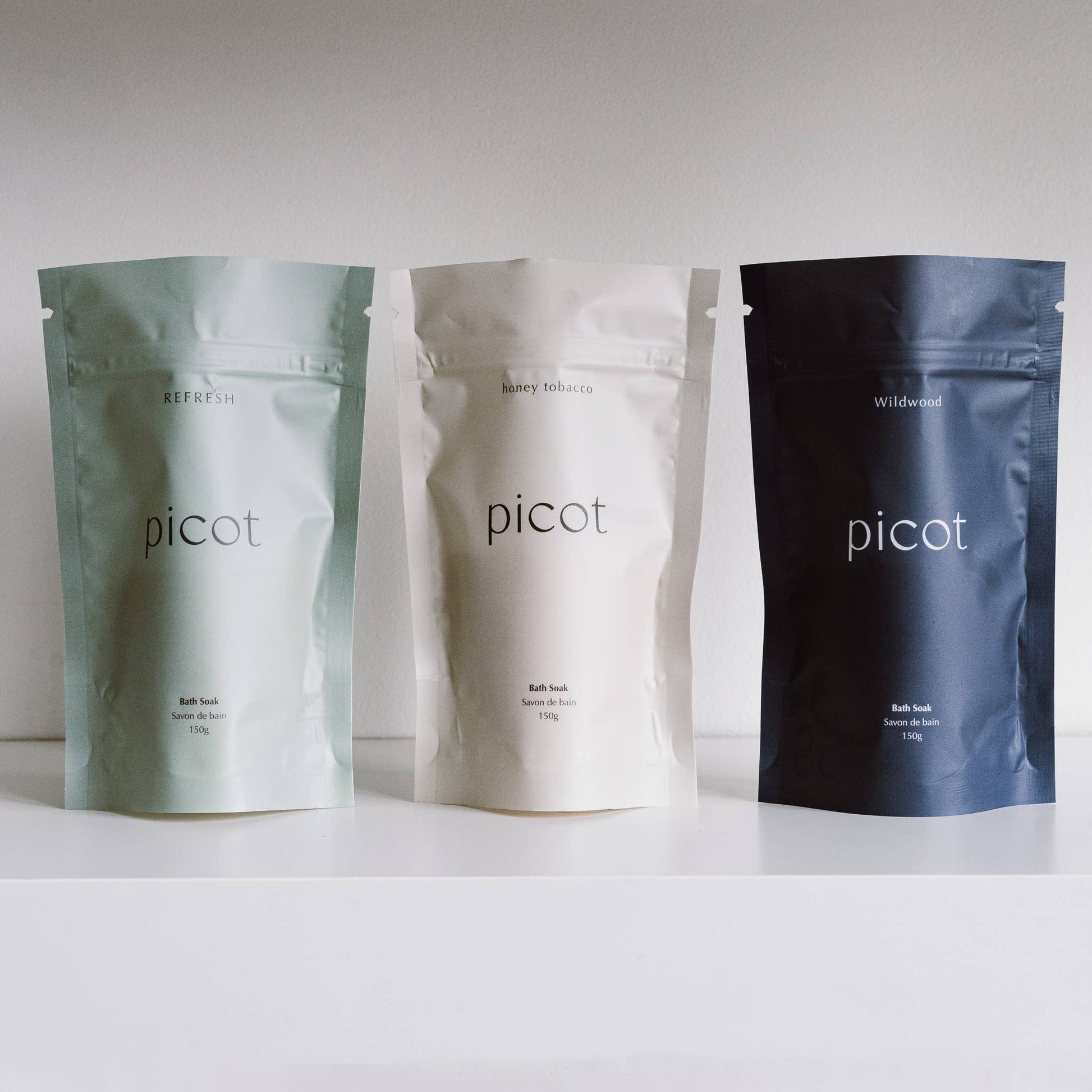 Experience the benefits of three luxurious bath soaks with the Picot Bath Soak Gift Set, featuring Honey Tobacco, Refresh, and Wildwood in 150g bags. Whether you're giving them as a gift or indulging in a self-care ritual, each soak is enriched with rich clay for deep-cleansing, purifying your pores and leaving your skin feeling irresistibly soft and smooth. The blend of magnesium sulfate and Dead Sea salt aids in detoxification, improving circulation and promoting overall skin health.