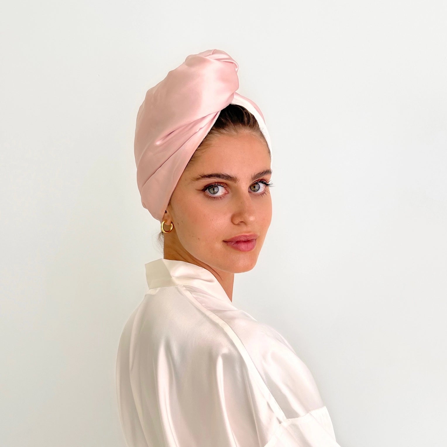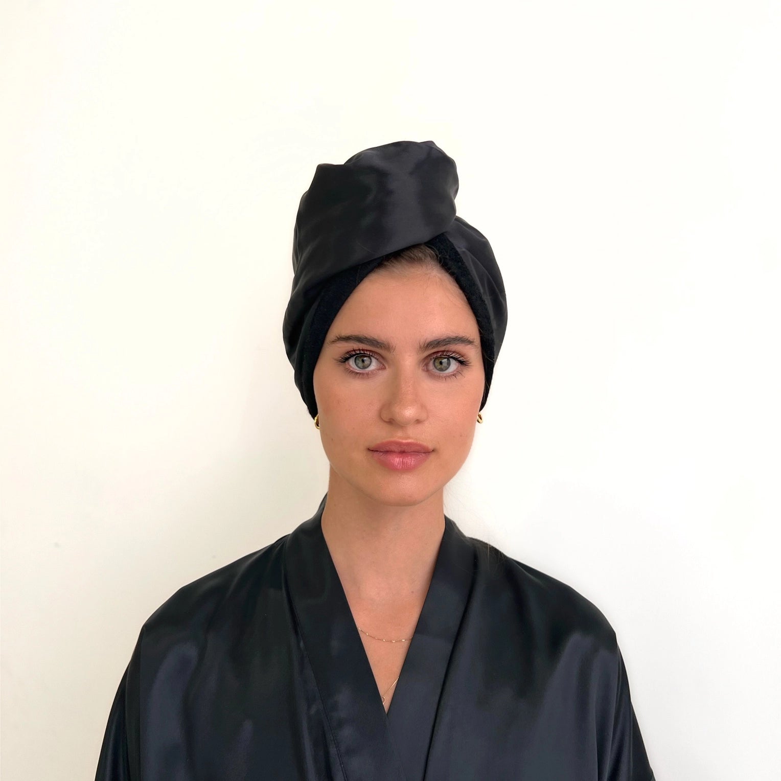 Experience the ultimate hair care with our Reversible Silk Hair Wrap. Made from the highest quality (6A) pure organic 22 momme silk, this buttery soft towel wrap gently holds your hair up and away from the face to reduce frizz and breakage. Its dual design allows for use as a sleeping wrap to prevent bed-head, while the interior is lined with absorbent, organic 100% bamboo to gently dry damp hair without causing damage or snags. Plus, our wrap is free of toxic dyes and materials, and is OEKO-Tex certified. Simply alternate between the two sides as needed, but avoid using the silk side on wet hair.