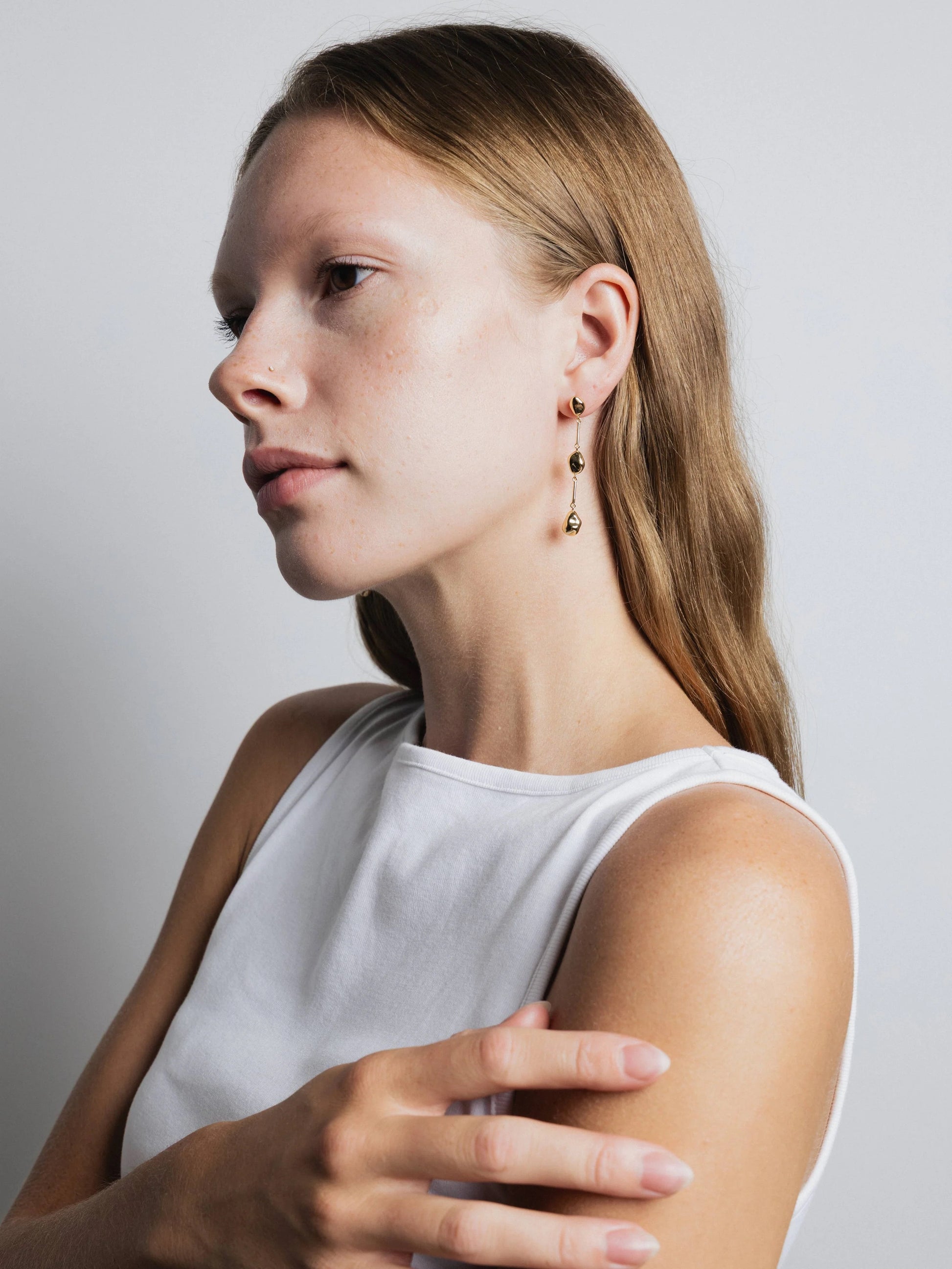 Created through expert handcraftsmanship in Vancouver, BC, these bean-shaped earrings feature 14k gold plating layered over recycled brass, complemented by hypoallergenic 14k gold vermeil posts. A refined essential designed to seamlessly integrate into your daily rotation with understated sophistication.