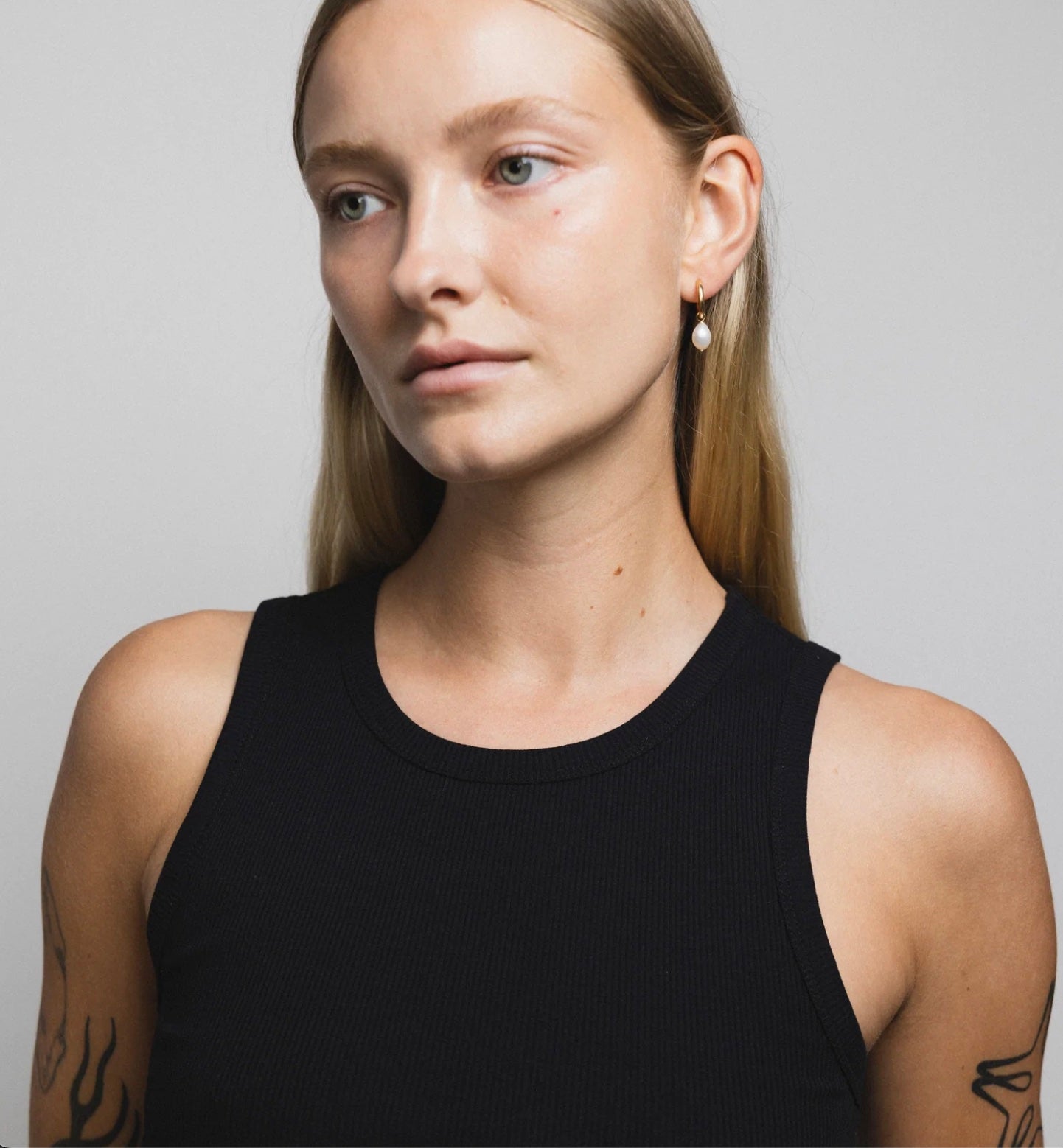 Elegant hoop earrings featuring a detachable freshwater pearl charm. Made with 14k gold-plated recycled brass and hypoallergenic hinges, they measure 11mm in diameter. Each pearl's natural variation makes your pair distinctly yours. Wear with or without the pearl for versatile sophistication.